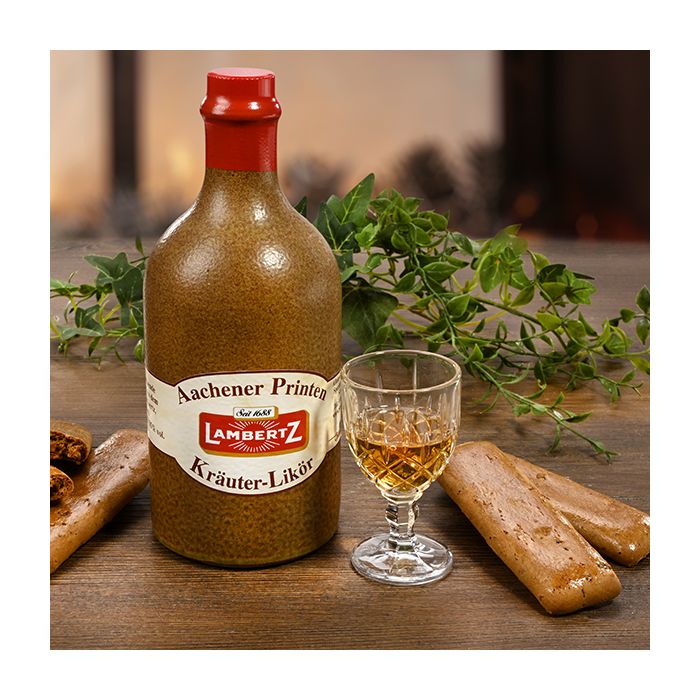 Erleben Sie den Lambertz Printen-Kräuter-Likör – ein edles Getränk, das nicht nur mit seinem einzigartigen Geschmack, sondern auch mit seiner stilvollen Verpackung begeistert!