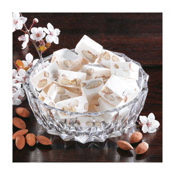 Weich und verführerisch lecker, mit knusprigen Mandeln und einem Hauch von Honig. Unwiderstehlich! Genießen Sie unser Soft-Nougat der besonderen Art! Unser Weißer Nougat besteht aus einer schaumig aufgeschlagenen hellen Masse aus Zucker, Eischnee und Honig sowie Mandeln. Er hat eine weiche bis halb feste Konsistenz Unser Mandel Soft Nougat ist nicht zu verwechseln mit dem türkischen Nougat der auch als Türkischer Honig bekannt ist.